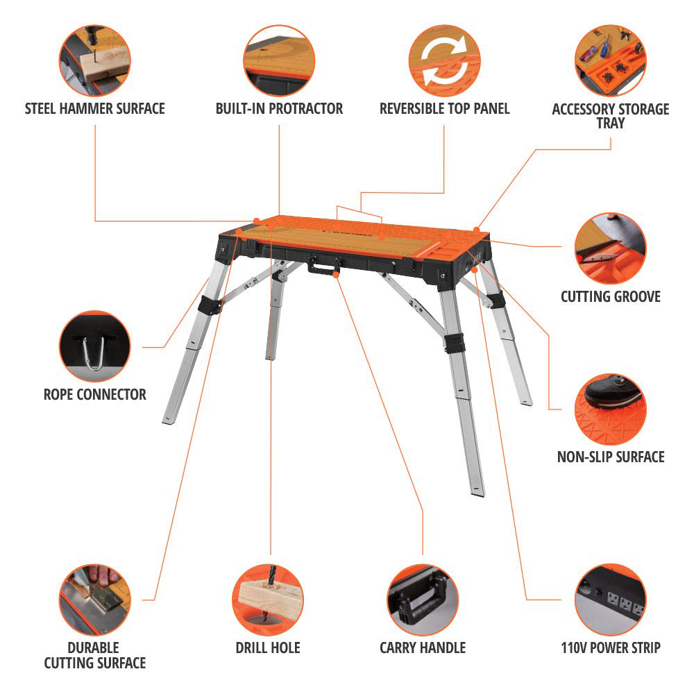 Дom > GRT6075--деревообрабатывающий верстак4 в 1 Flodable рабочий стол